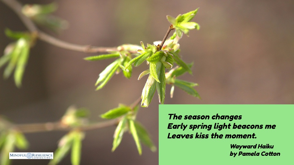 Nature can hold us in the moment with its beauty, and it helps us feel grounded. Allowing time to connect with its gifts is important. Nature is always in the moment, which can inspire our practice and encourage our own mindfulness. Even nature-in-a-pot can offer this gift if we take the time to be with its presence.